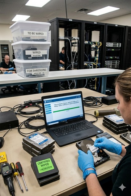 Retired IT equipment often contains sensitive corporate information. Professional ITAD services ensure that all data-bearing devices undergo certified data destruction before disposal or reuse.